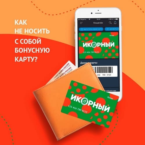 Карту «Икорный бонус» без проблем можно добавить в приложение Кошелек, Stocard и многие другие. Это очень удобно, когда телефон выполняет функцию виртуального мобильного кошелька. Показал продавцу в магазине карту со штрихкодом в телефоне и получил или списал свои бонусы. А распухший от карточек бумажник оставьте дома!