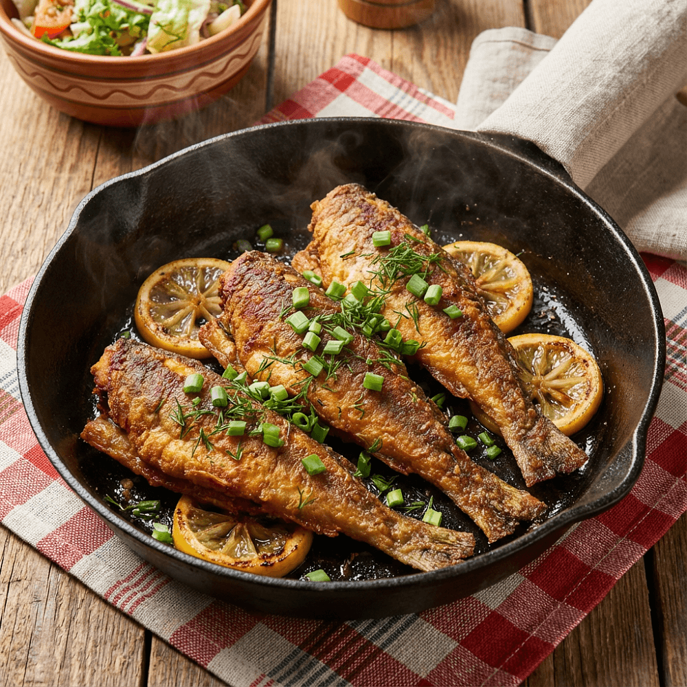 Не выкладывайте всю рыбу в сковороду разом. Оставляйте между рыбками достаточно пространства. Они должны именно жариться, свободно "дыша", а не тушиться в тесноте в собственном пару.