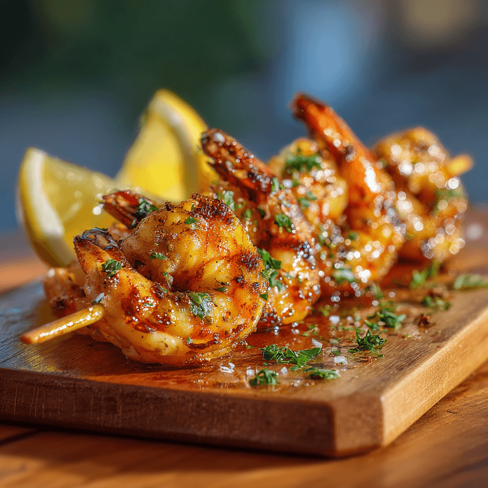 Эти мини-шашлычки из креветок — беспроигрышный вариант для гриль-вечеринки. Они готовятся мгновенно, выглядят эффектно и впитывают ароматы дыма и маринада. Идеальная закуска или легкое основное блюдо.