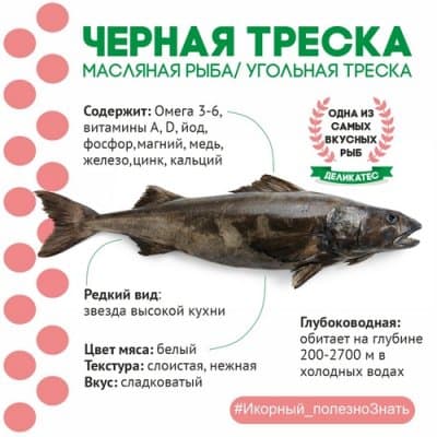 Черная треска (угольная) без головы свежемороженая, «Икорный», ~0,9 кг