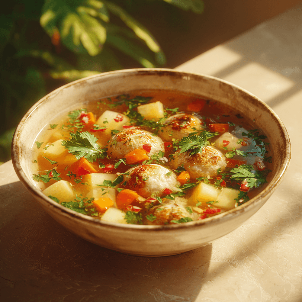Этот суп оценят и взрослые, и дети. Нежные рыбные фрикадельки делают его сытным и оригинальным. Отличный способ разнообразить осеннее меню.
