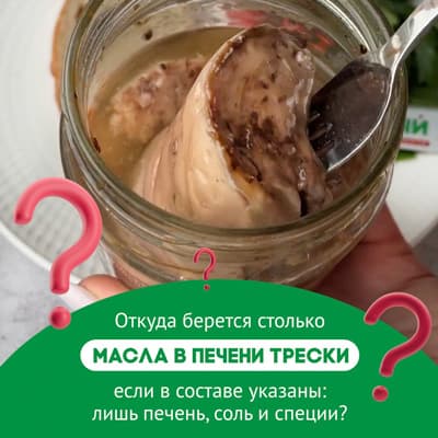 (P. S. На прилавках супермаркетов все же может встречаться продукт с добавлением масла и это должно быть указано на упаковке. Как правило, масло добавляют в продукт, изготовленный из замороженного сырья, чтобы скрыть сухую консистенцию. Такие консервы однозначно уступают в качестве, поскольку в отличие от мяса, печень трески теряет полезные свойства при заморозке. Рекомендуем обращать внимание на этот момент при выборе продукта.)