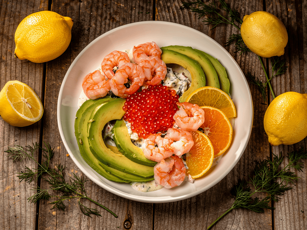 Этот салат — воплощение элегантности и пользы. Он выглядит по-праздничному, но готовится очень просто. Нежные креветки, хрустящий апельсин и сливочный авокадо в облаке легкого йогуртового соуса, а яркие икринки добавляют каждому кусочку пикантной вспышки вкуса и морской пользы.